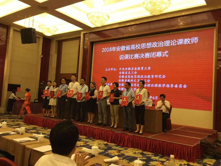 党支部是一个战斗堡垒,党员的模范形象是无声的号角。基础纲要党支部老师承担了全校“思想道德修养与法律基础”“中国近现代史纲要”“形势政策”的课程,全体党员克服种种困难,在教学岗位上我们默默做着奉献,发挥着模范带头作用。支部党员按照习近平总书记提的“政治要强、情怀要深、思维要新、视野要广、纪律要严、人格要正”的六点要求,牢牢坚持马克思主义在高校意识形态领域的指导地位,坚持思政课的政治方向。支部党员在高质量完成教学任务的同时,也注意教学经验的总结和技能的提升。2019年,支部党员宣璐老师参加了由国家教育行政学院承办的中宣部、教育部高校思想政治理论课骨干教师研修班的学习。在教学效果方面,2019年支部党员获得省级教学成果一等奖、三等奖各一项;支部党员积极参加教学竞赛,在安徽省思政课相关比赛中省级二等奖1项,三等奖2项。