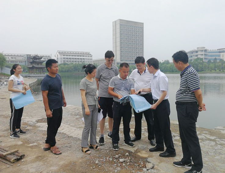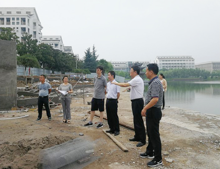 本网讯 7月30日,校党委书记方潜生、副校长成祖德深入易海湖东侧景观改造现场,实地检查项目施工情况,后勤服务集团及施工单位项目负责人陪同检查。