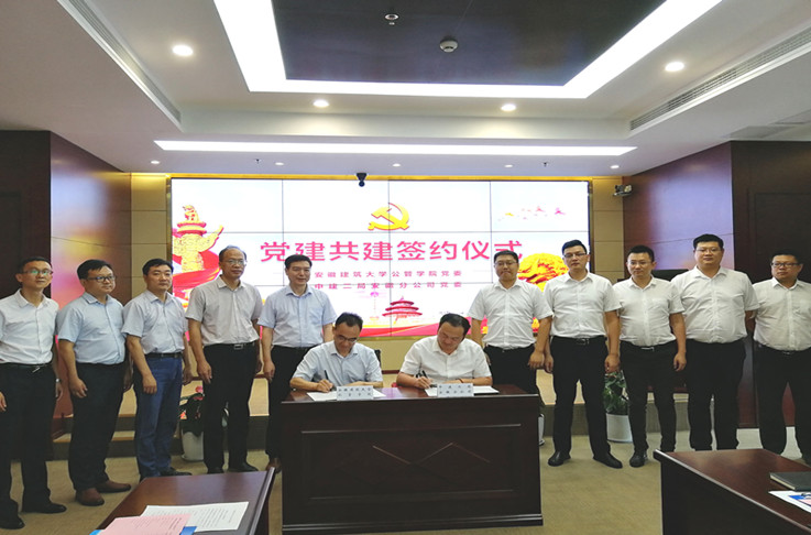 会后,公管学院党委与中建二局安徽分公司党委举行党建共建签约仪式,参会嘉宾合影留念。