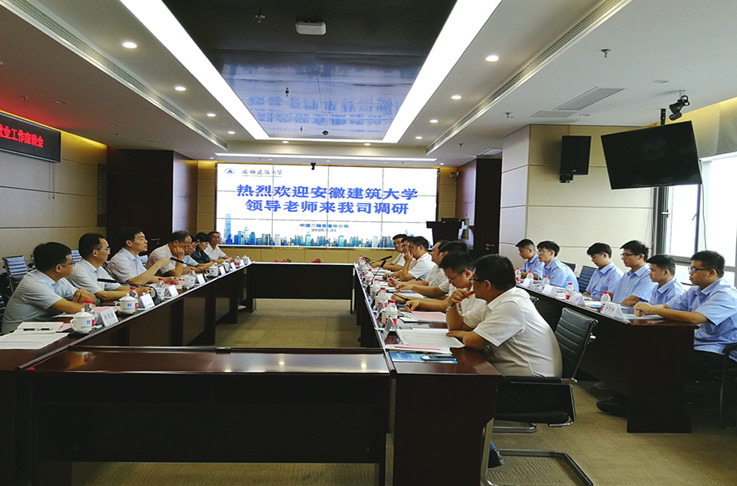 中建二局华东公司总经理助理、安徽分公司党委书记、总经理李文涛对调研组一行到来表示热烈欢迎,并详细介绍了公司发展规模、区域市场分布、业务涵盖领域、人才培养理念等内容。中建二局华东公司人力资源部副经理董彦成对我校毕业生在企业发展及公司青年员工“全链条”人才培养体系等相关情况进行了介绍。