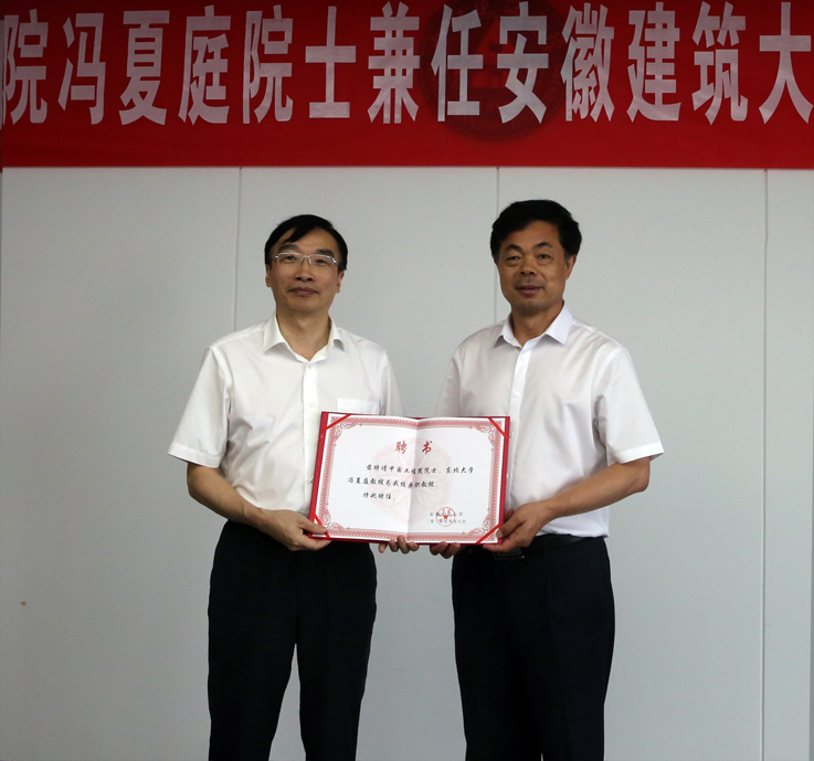 孙道胜介绍了学校基本情况并为冯夏庭院士颁发兼职教授聘任证书,他强调了冯夏庭院士的加盟对学校学科建设和高水平人才培养的重要推动作用。