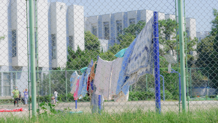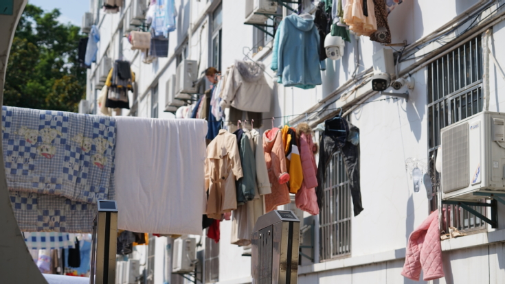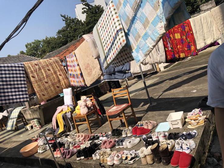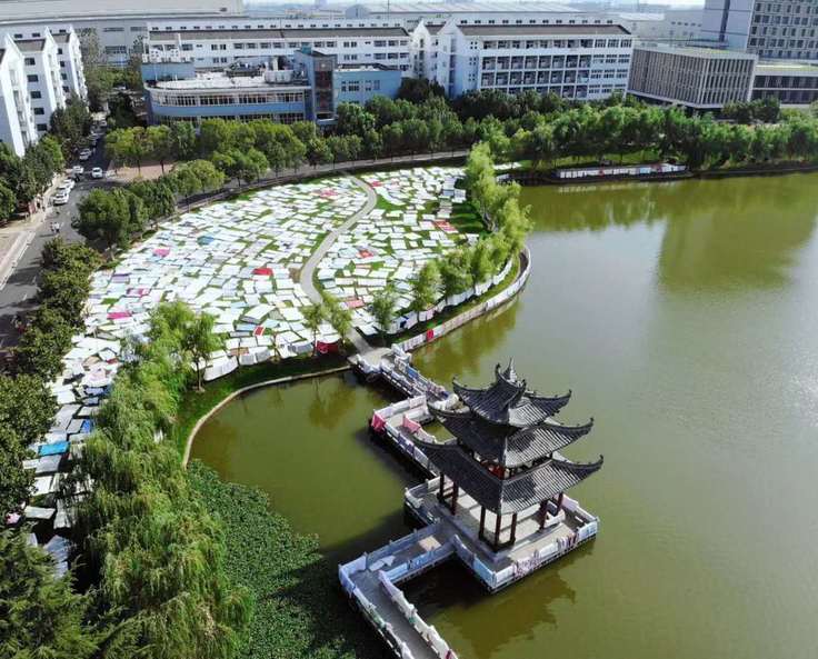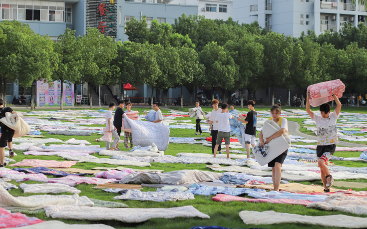 返校当天艳阳高照,校园里也掀起了一场蔚为壮观的花式晒被热潮。