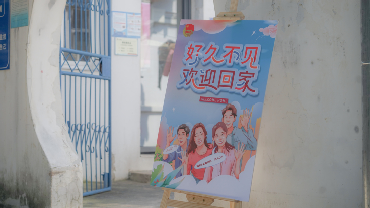 校园里欢迎回家的横幅、标语,温馨亲切暖心。