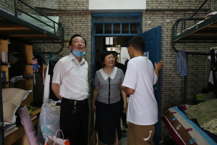 深入学生,关怀指导。校领导高度重视学生返校工作,多次召开专题会议研究部署。返校日当天深入南北校区学生返校一线,现场检查学生返校及疫情防控工作落实情况。校党委副书记、校长孙道胜走访各学院报到区,详细了解学生返校报到流程、报到人数等情况。校党委副书记吕萍、副校长蔡新立深入学生宿舍,详细了解学生返校后学习生活情况,嘱咐学生要持续做好个人防护,合理规划学习生活。