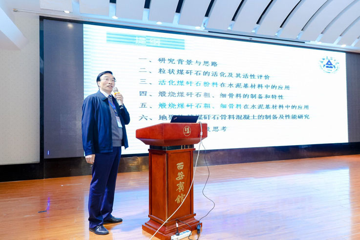 孙道胜介绍了以“煤矸石在水泥基材料中全组分高效利用技术”为主题的报告,报告主要内容包括粒状煤矸石的活化及其活性评价,活性煤矸石粉料在水泥基材料中的应用,煅烧煤矸石粗、细骨料的制备和特性,煅烧煤矸石粗、细骨料在水泥基材料中的应用,地聚物基煤矸石骨料混凝土的制备及性能研究,最后提出了由活性粉体到粗细骨料的全组分高效利用技术。