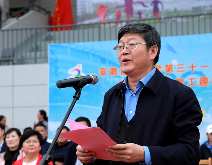 校党委副书记、校长孙道胜致辞,并宣布安徽建筑大学第三十一届田径运动会暨第十二届教工趣味运动会开幕。