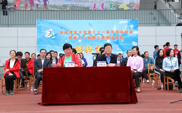本网讯 10月29日,秋意深浓、金风送爽,安徽建筑大学第三十一届田径运动会暨第十二届教工趣味运动会隆重举行。校领导孙道胜、吕萍、成祖德、蔡新立出席开幕式。