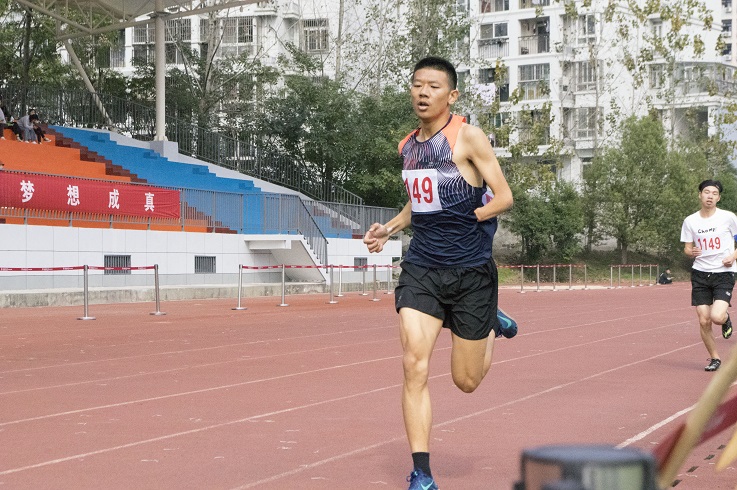陈翔宇待人友善,脸上总是挂着笑意,是同学们的“开心果”。来到安徽建筑大学,他遇到了许多志同道合的学长们:他们一起追逐、一同挥洒汗水、一同享受长跑的乐趣。他同样十分感激一直激励、教导他的老师——彭圣堂老师,正是在彭老师的指导下他逐渐从一名长跑爱好者蜕变成一名长跑健将。采访中我们也有幸了解到他训练的细节:每天至少8000米的长跑训练;每次训练3分30秒的平均配速。训练过程中的痛苦与压力唯有他自己清楚,可他无怨无悔,一直坚守着自己的长跑梦。他从未被自己打败,一直在超越自己。正所谓信仰强烈的人会赢取坚强的人,然后又使他们更坚强。随着时间的推移,昔日和他一起长跑的学长毕业离开了校园。跑道上只剩下他自己拼搏的身影,他希望能有更多的学弟能够加入他的长跑队伍,一起享受长跑的乐趣。