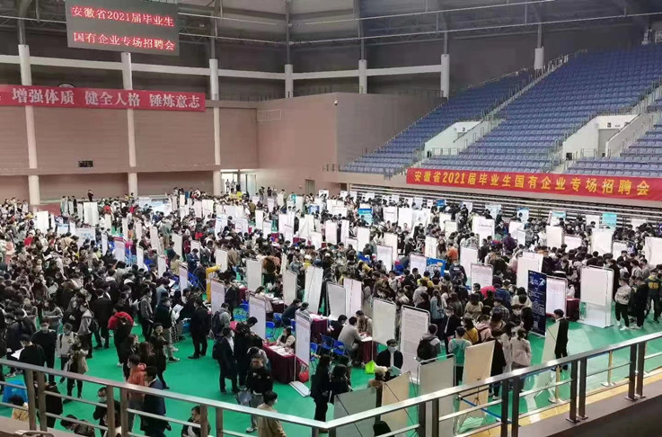 本网讯 11月7日,安徽省2021届毕业生国有企业专场招聘会在安徽大学磬苑校区体育馆举行,学校安排车辆,由老师带队,组织南、北校区280余名2021届毕业生前往参加。