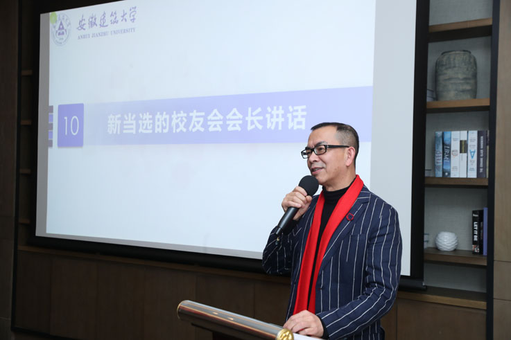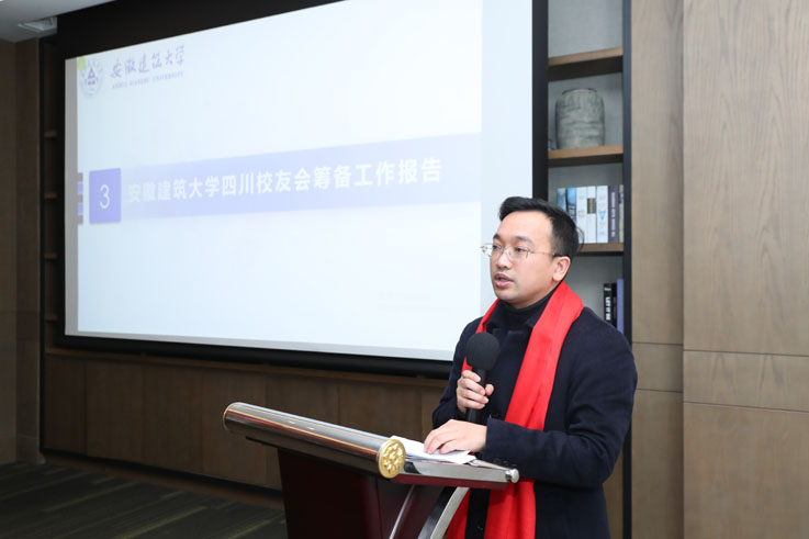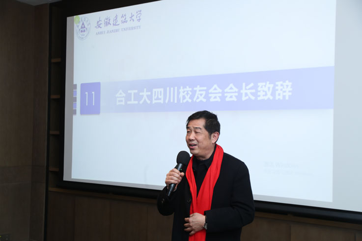孙道胜代表学校向四川校友会成立大会的召开表示热烈祝贺,向四川全体校友表示亲切问候和美好祝愿!他向校友介绍1958年建校以来,学校改革发展情况和取得的一系列标志性成绩,并详细介绍学校全力冲刺博士点工作。他指出,四川校友继承建大徽匠品质,努力拼搏并取得丰硕成绩,为学校赢得了荣誉。四川校友会的成立有利于加强西南地区校友与学校及校友之间的联系,推动交流合作,促进共同发展。他希望四川校友会理事成员履职尽责,搭建平台,提供资源,为校友和学校发展服务。鼓励校友恪守建大“进德、弘毅、博学、善建”精神,积极参与、支持校友会活动,借助校友会平台提升自我,更好地为学校和社会发展多做贡献。最后,希望校友们继续关注支持母校建设发展,多提宝贵意见,欢迎常回母校看看!