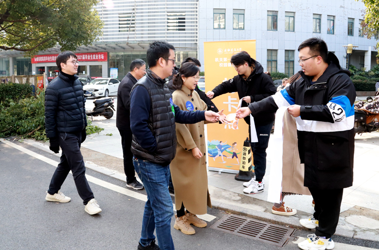 本次健步走从南大门出发,绕规定路线两圈,采取现场通关打卡的方式进行,途径实验综合楼、教工食堂、大学生活动中心、九月桥、易海中路、鸣乐西路、最终抵达终点南大门。