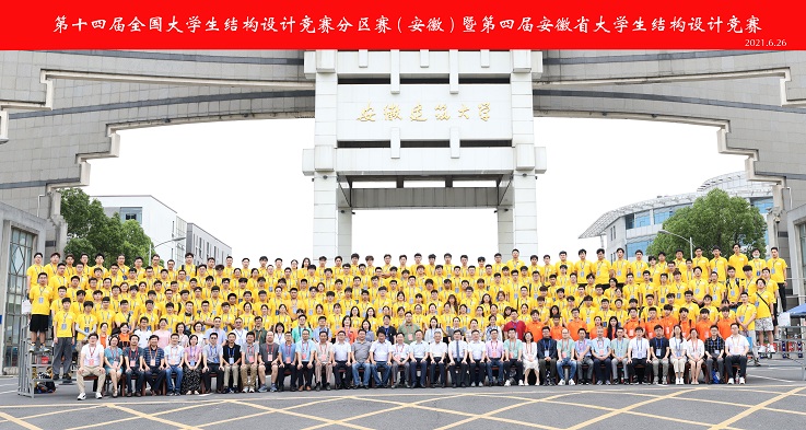 全体人员在安徽建筑大学徽弘门进行了合影留恋,随后参赛选手投入到紧张的比赛进程中。(文/图:唐礼平,施国栋,刘毅阳,陈雷雨;审稿:吴德义)
