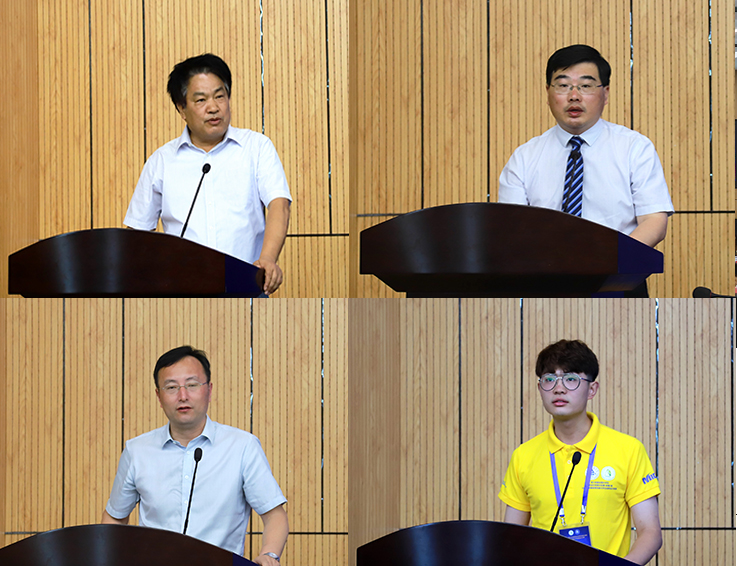 赛事评委专家代表张乾坤代表全体评委郑重承诺,将以积极、热情的态度参与这项工作,在比赛过程中坚决服从组委会的领导,遵守比赛规则,尊重参赛选手,尊重客观事实,坚持公平、公正、公开的原则,以良好的道德风尚和专业水平完成好组委会赋予的职责。党义宣同学代表参赛选手发言。