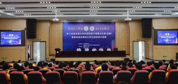 本网讯 6月25日上午,第十四届全国大学生结构设计竞赛分区赛(安徽)暨安徽省第四届大学生结构设计竞赛开幕式在安徽建筑大学实验综合楼学术报告厅开幕。此次竞赛由安徽省教育厅、安徽省大学生结构设计竞赛组织委员会主办,安徽建筑大学、合肥工业大学承办。副校长丁克伟,安徽省大学生结构设计竞赛秘书长、合肥工业大学土木与水利工程学院常务副院长王静峰,合肥市市政设计研究总院有限公司正高级工程师张乾坤,合肥工业大学教授王辉出席开幕式,参赛学校负责人及指导教师和全体参赛选手共计24所高校、64支参赛队300余人参加开幕式。土木学院院长吴德义主持开幕式。