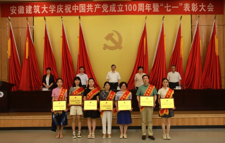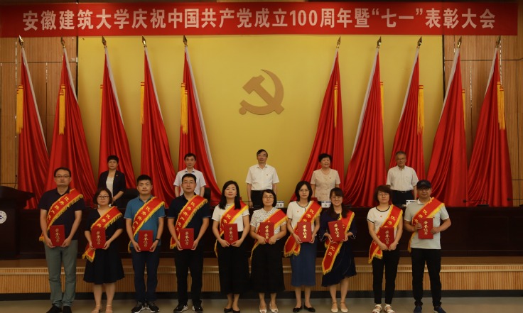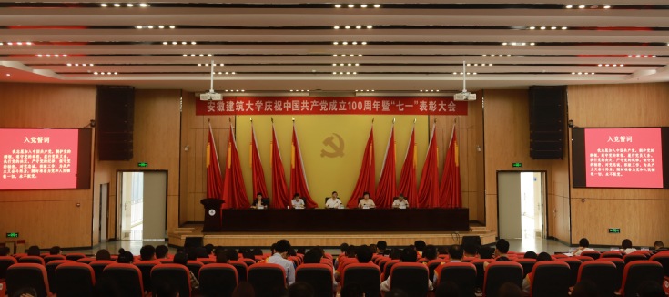 本网讯 6月29日,学校在南区实验综合楼报告厅隆重召开庆祝中国共产党成立100周年暨“七一”表彰大会。校领导孙道胜、吕萍、成祖德、丁克伟、王玉兰出席大会,全校副处级以上干部、各党支部书记以及受表彰的先进基层党组织代表、优秀共产党员和优秀党务工作者参加会议。省委党史学习教育巡回指导组成员张艳、郝红暖、侯东坡到会巡听指导。会议由校党委副书记吕萍主持。