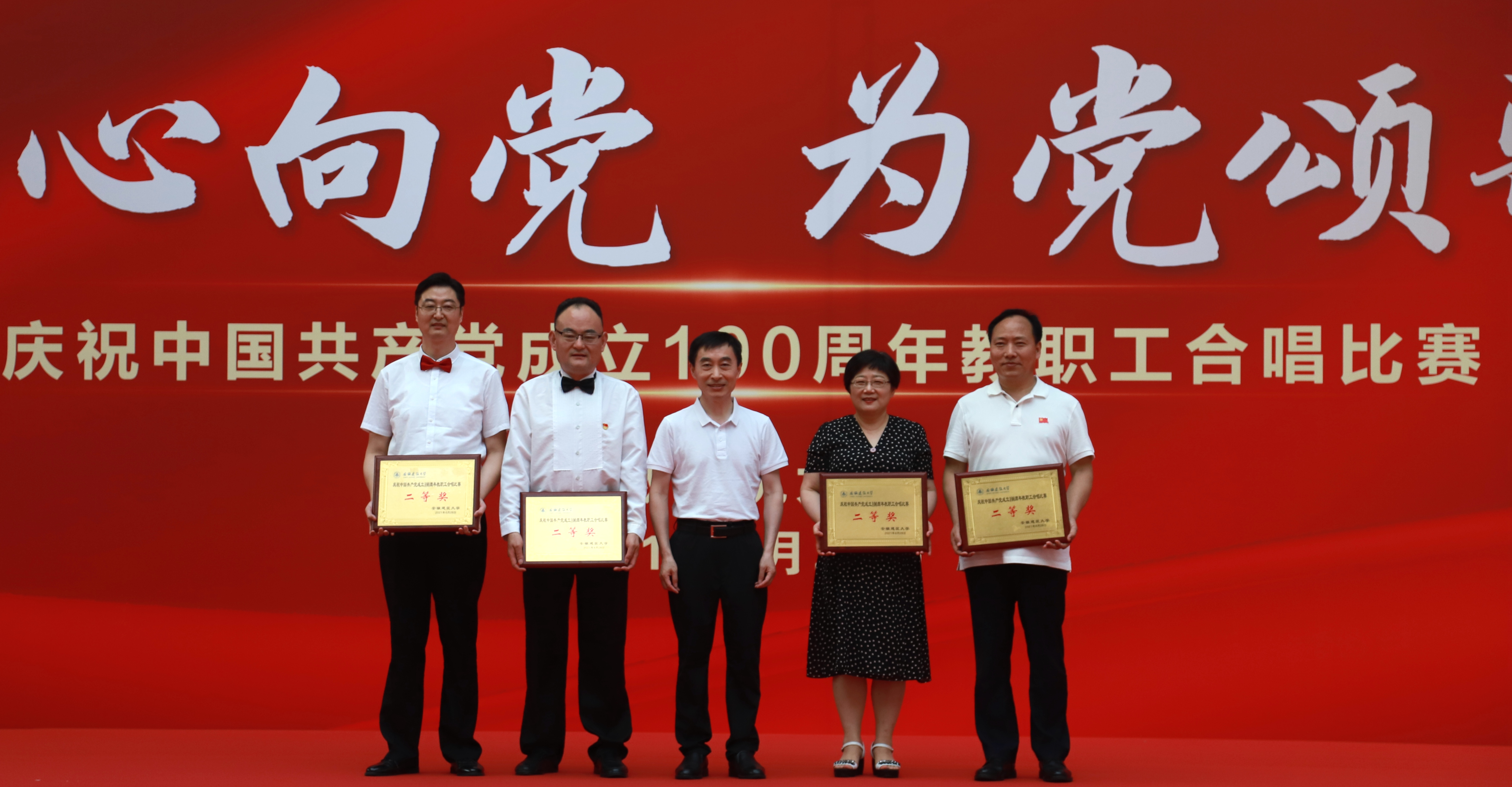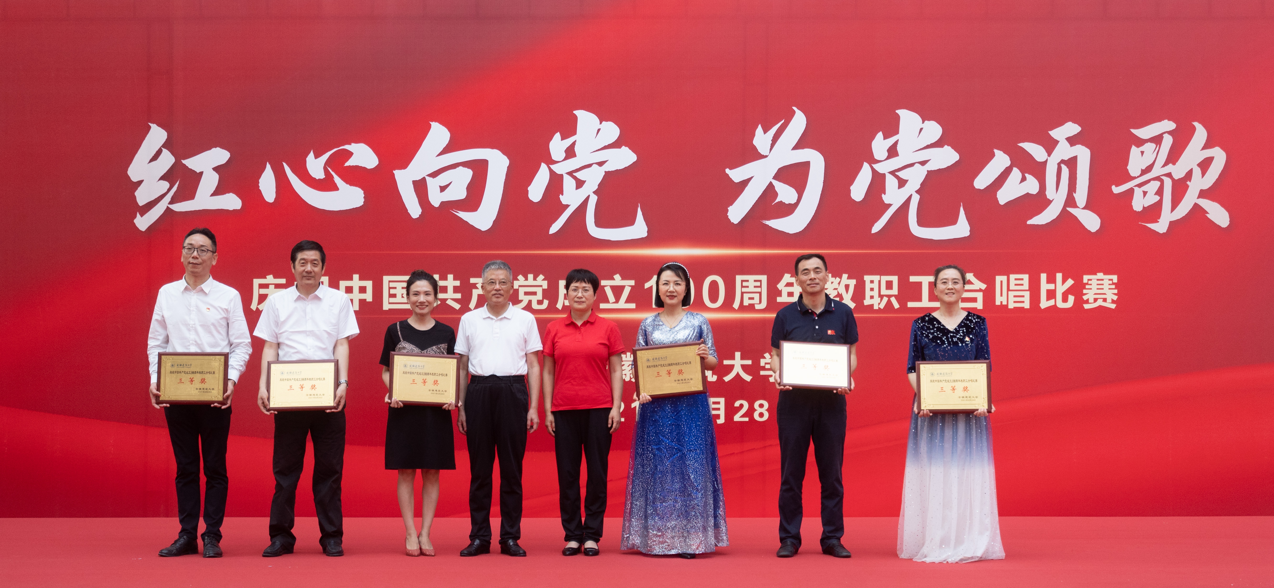 本网讯 奋斗百年路,启航新征程。6月28日,在中国共产党成立100周年来临之际,“红心向党·为党颂歌”——庆祝中国共产党成立100周年教职工合唱比赛在南校区体育馆举办。机关第二分会等16支合唱队参加此次比赛,共同回顾中国共产党成立100年来波澜壮阔的光辉历程,共同祝福伟大的党带领中国人民迈进新征程、奋进新时代。校党委书记、校长孙道胜,校党委副书记吕萍,副校长成祖德,副校长丁克伟,纪委书记、监察专员王玉兰出席并参加比赛。