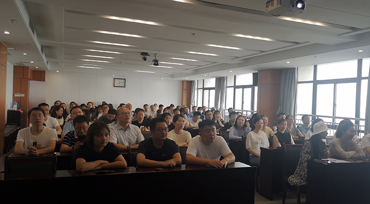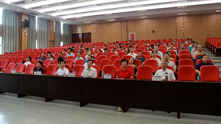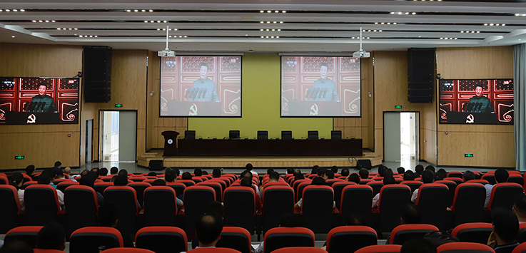 在南区实验综合楼二楼报告厅,校领导孙道胜、吕萍、成祖德、丁克伟、王玉兰及全体处级干部一同收看庆祝大会现场直播,聆听习近平总书记重要讲话。