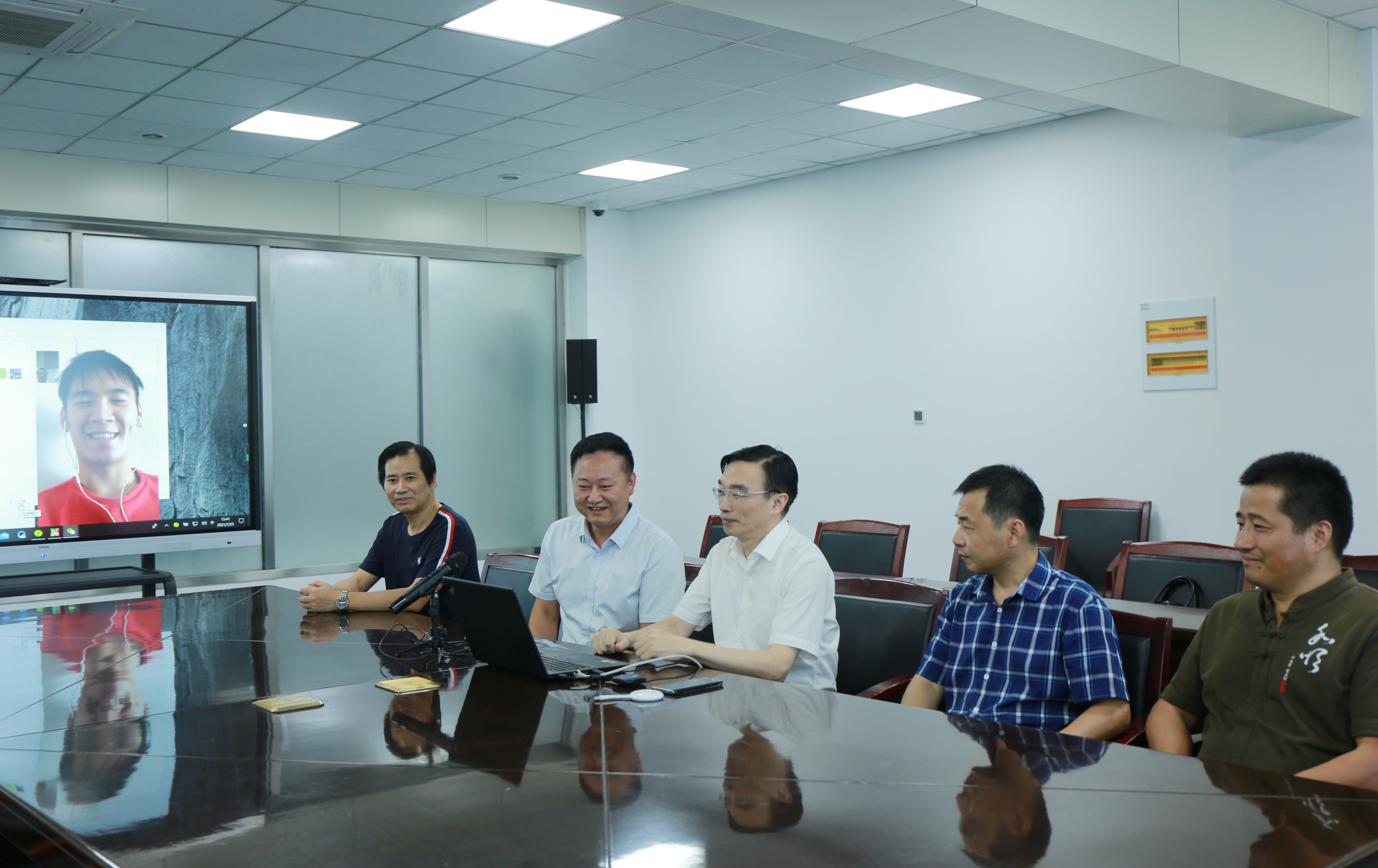 本网讯 7月25日下午,校党委书记、校长孙道胜线上慰问我校出征东京奥运会运动员黄梦恺同学。