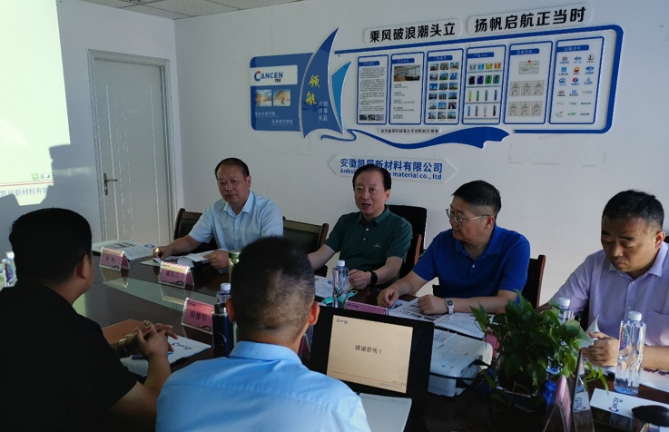 本网讯 8月8日,副校长蔡新立率科学技术处(产学研合作办公室)、科技成果转化中心、环境与能源工程学院、材料与化学工程学院有关人员赴安徽凯辰新材料有限公司开展产学研合作洽谈。安徽凯辰新材料有限公司徐德明董事长热情接待了蔡新立一行。