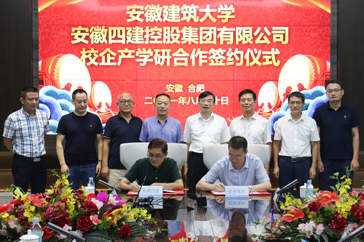本网讯 8月20日,校党委书记孙道胜率队到安徽四建控股集团有限公司签订校企产学研合作协议。安徽四建集团董事长陈桂林、副董事长王元曦、集团副总裁王虹和徐涛,以及学校科技处、土木工程学院相关人员参加签约仪式。