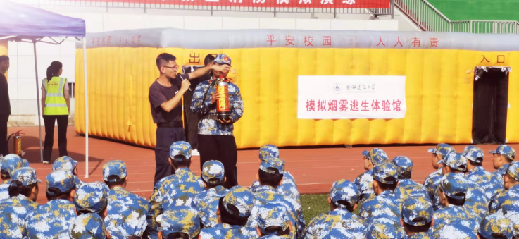 本网讯 9月18日,保卫处组织2021级学生开展消防模拟演练和疏散逃生演练,副校长张亚新现场观摩指导。