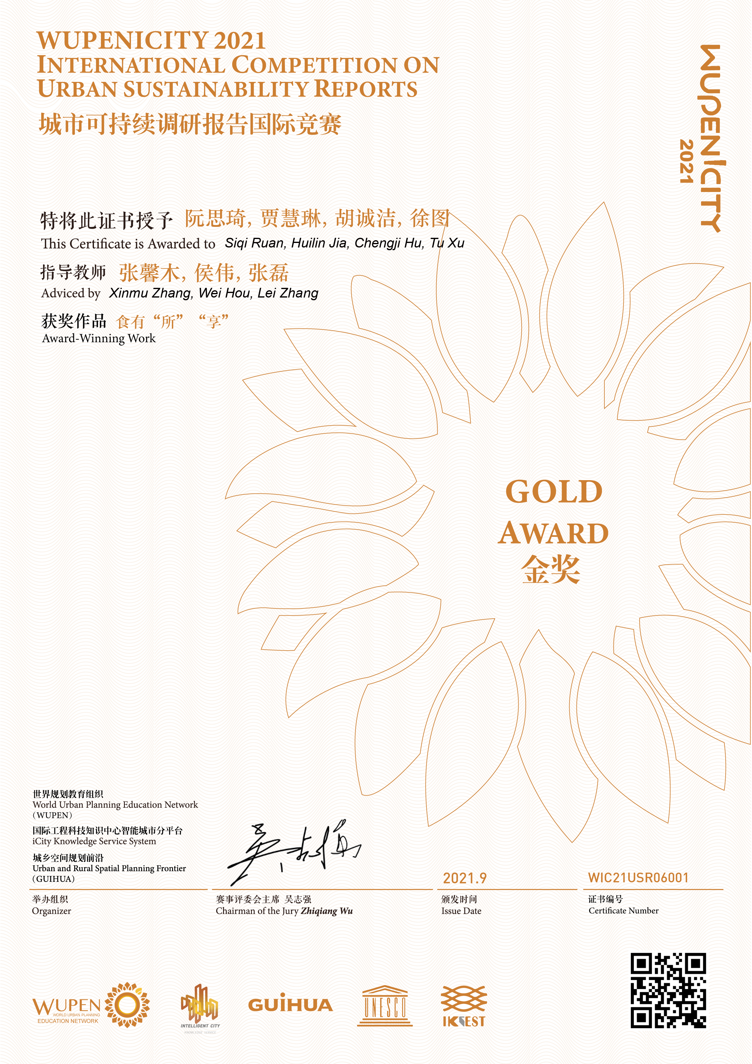 本次竞赛由世界规划教育组织、联合国教科文组织iCity智慧城市服务平台、《Guihua》杂志联合主办。WUPENiCity2021城市设计及2021城市可持续调研报告共1768份,其中2021城市可持续调研报告竞赛参赛团队共758支,包括清华大学、同济大学、武汉大学、华南理工大学、西安建筑科技大学等知名高校。