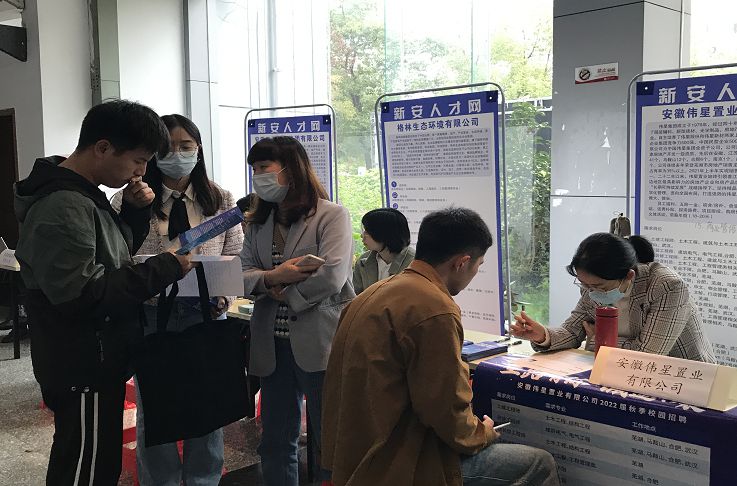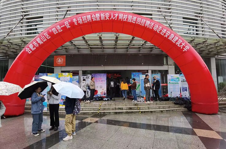 本网讯 为推进毕业生就业工作的开展,搭建毕业生与用人单位的双向选择平台。10月20日,2021年蜀山区“四进一促”专场招聘会暨新安人才网校园巡回招聘活动在我校大学生活动中心举办。