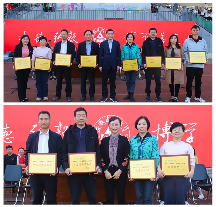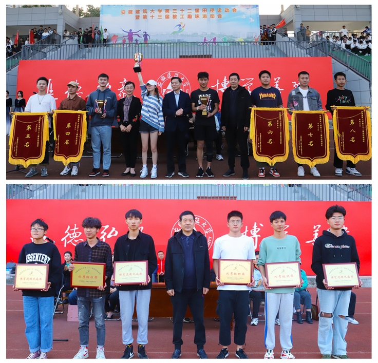 数理学院、产业分会、机关第二分会获得教工趣味运动会团体总成绩前三名;数理学院、机关第一分会获得教工优秀组织奖;机关第二分会、环能学院获得教工体育道德风尚奖。