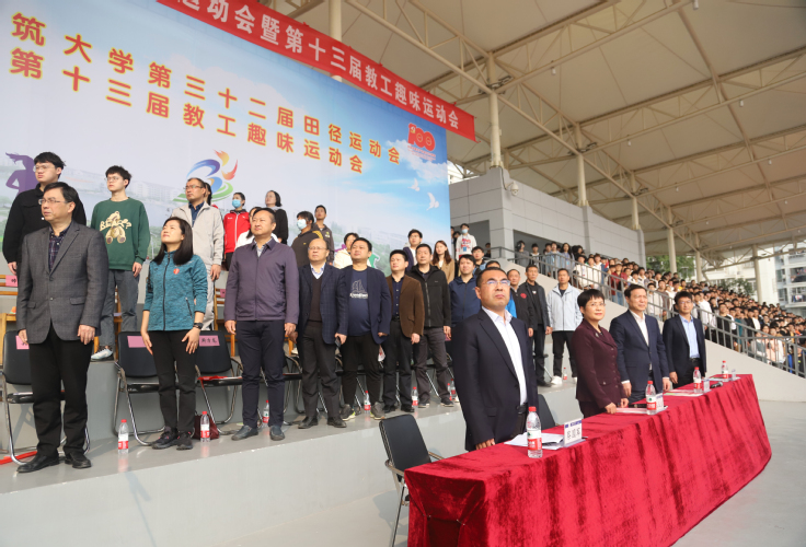 本网讯 10月28至30日,金风送爽、阳光明媚,安徽建筑大学第三十二届田径运动会暨第十三届教工趣味运动会隆重举行。校领导黄显怀、王玉兰、张亚新、蔡国军出席开幕式。校党委副书记、校长黄显怀宣布安徽建筑大学第三十二届田径运动会暨第十三届教工趣味运动会开幕。校纪委书记、监察专员王玉兰主持开幕式。副校长张亚新致开幕词。