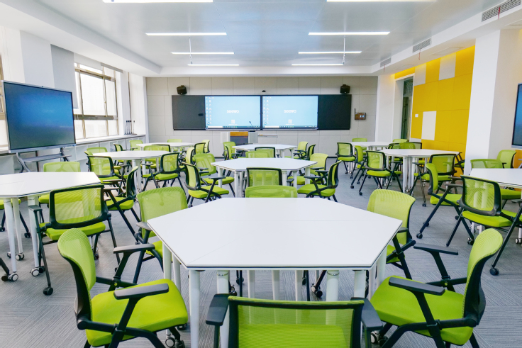 培训中心由主教学楼6楼的三间智慧教室组成,按功能分为教学发展培训室、教学沙龙室和微格教学训练室。
