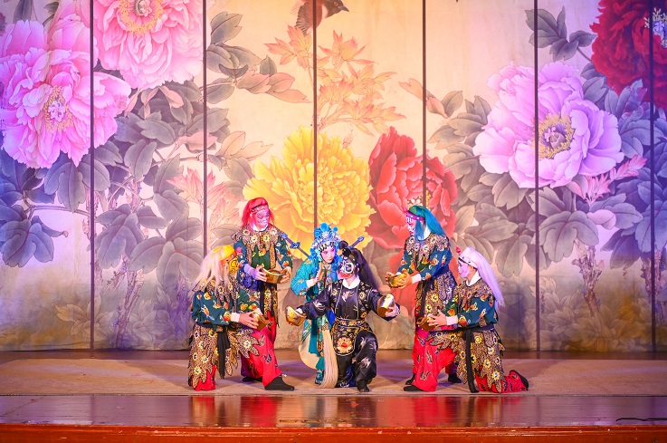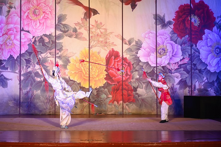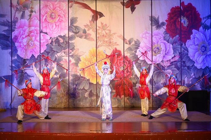 整场演出在徽剧《白蛇传·盗草》的紧张氛围中拉开序幕,委婉动听的唱腔、丰富传神的表情再现了白素贞为救许仙前往昆仑山盗取灵芝仙草的场景,演员们的一招一式,充分发挥了剧种的特色优势,塑造出一个个鲜活的人物形象,举手投足都吸引着台下师生们的目光,整个报告厅掌声经久不息。《拾玉镯》礼赞了青年之间纯真自由恋爱的美好,也是一折富有喜剧色彩的生活小戏。精彩绝伦的故事,令人眼花缭乱、如行云流水般的动作,让观众频频叫好。还有京剧《盗库银》《天女散花》这些经典选段,演员们真挚饱满的情感,娴熟精湛的动作,悠扬婉转的腔调也都深入人心,全场演出高潮迭起,掌声、快门声、叫好声不断。