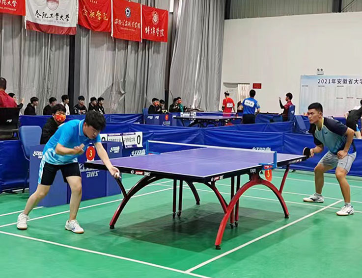在强手如云的甲组男子团体比赛中,我校艺术学院张浩瀚、研究生院陈鹏、经管学院赵丁豪等五位运动员组成的男子团体顶住压力,一场一分拼出小组第一,并在淘汰赛中力克强队,最终获得男子甲组团体二等奖的好成绩,实现该赛事历史性突破。张浩瀚同学带伤拼搏,在男单决赛中惜败上届冠军,荣获亚军,并与陈鹏同学组合获得男双三等奖。除此之外,丙组比赛中我校仅派出两名运动员参赛,最终宁桦同学获得女单二等奖,又与鲍子禛同学奋力拼搏获混双三等奖的优异成绩。