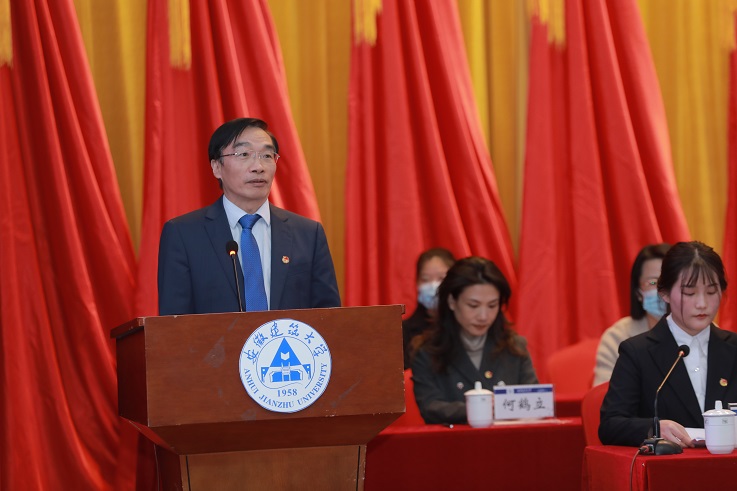 孙道胜代表学校党委向大会的召开表示了热烈祝贺,指出这是党领导全国各族人民全面建成小康社会、开启第二个百年奋斗目标新征程之际召开的青春盛会,建大学子正同全国人民一道,在矢志奋斗中谱写新时代的青春之歌。近年来,全校各级学生组织在学校党委的领导下,在团省委和省学联的指导下,紧密围绕学校中心工作,积极服务青年学生,通过“第二课堂”开展各项活动,丰富校园生活。这是各级学生干部和广大青年学生共同努力的成果,更是上级党、团组织关心、支持的结果。他希望广大同学以更加饱满的激情和更加昂扬的斗志,让青春在不懈奋斗中绽放绚丽之花!