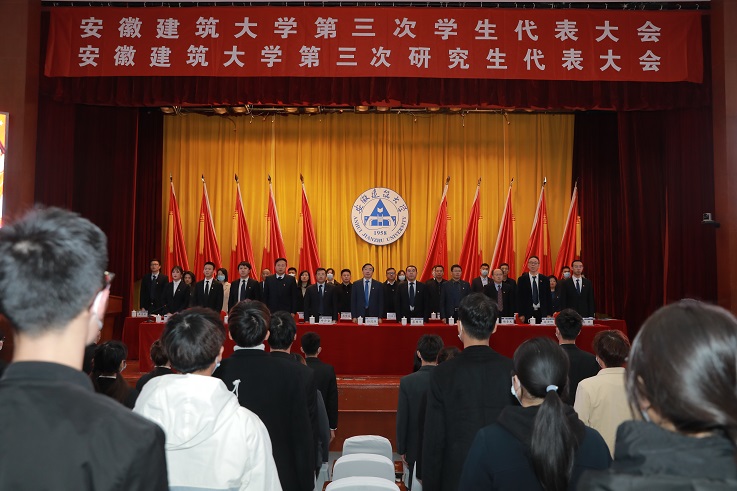 本网讯 11月10日,安徽建筑大学第三次学生代表大会,第三次研究生代表大会(以下简称“两代会”)在南校区大学生活动中心报告厅召开,校党委书记孙道胜、副校长蔡国军出席会议,相关单位负责人、各学院学生工作负责人、院校两级团委负责人以及170名学生代表和30名研究生代表参加大会。