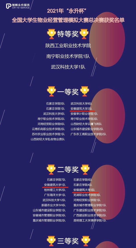 2021年“永升杯”全国大学生物业经营管理模拟大赛由中国职业经理人协会指导,中国职业经理人协会物业经理人分会主办,武汉科技大学恒大管理学院、北京现代中欧软件开发有限公司联合承办的全国性大赛。大赛自报名以来,吸引了全国近百所高校、3000余名学生参赛。大赛构建了理论学习与实践对接的平台,帮助学生实现学习、训练、经营管理技能、决策能力的提升。