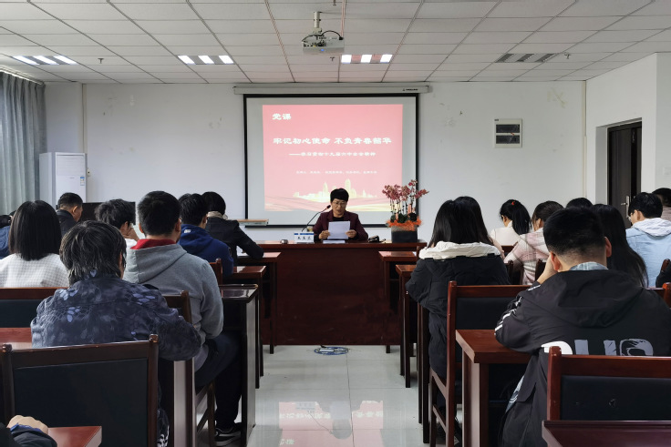 本网讯 11月17日,校纪委书记、监察专员王玉兰深入数理学院,为学院师生讲授题为“牢记初心使命,不负青春韶华”的专题党课,教师党员代表、学生党员、入党积极分子聆听党课。