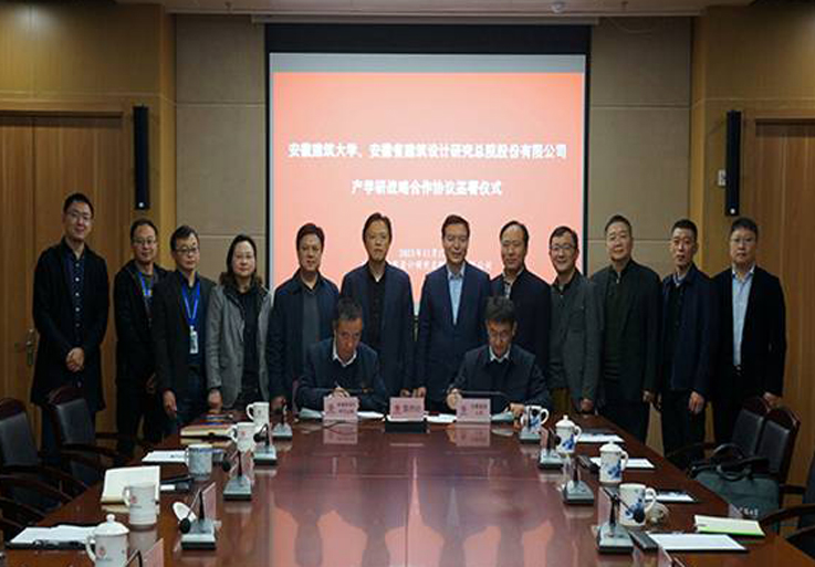 本网讯 11月18日,安徽建筑大学与安徽省建筑设计研究总院股份有限公司举行产学研战略合作协议签约仪式。校党委副书记、校长黄显怀,副校长张亚新,安徽省建筑设计研究总院股份有限公司董事长高松,副总经理毕功华、韦法华出席会议。