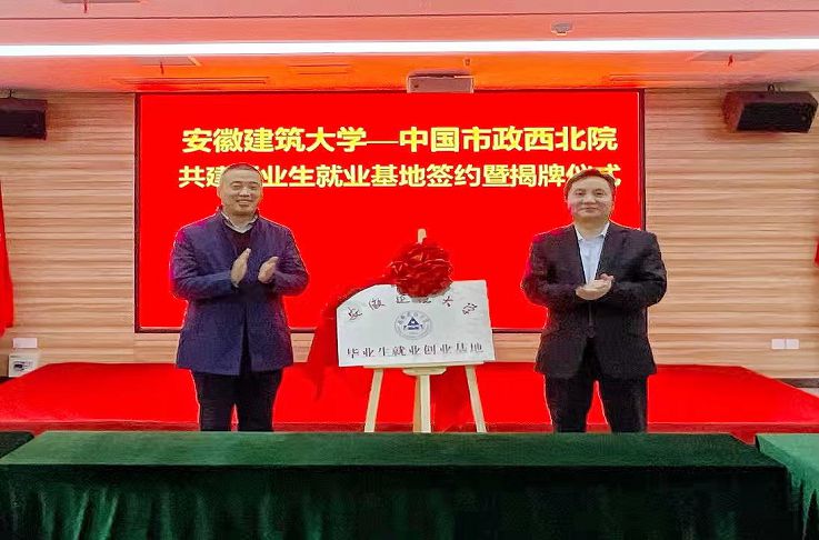 本网讯 为优化人才培养模式,拓宽毕业生就业渠道。11月18日,副校长闵杰率就业工作处、研究生院、土木学院、建规学院及环能学院相关负责人赴中国市政西北院开展校企合作交流,并举行安徽建筑大学毕业生就业基地签约与揭牌仪式。