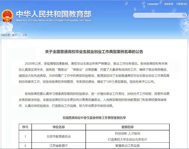 2020年以来,受疫情等因素影响,高校毕业生就业形势严峻复杂,就业工作任务艰巨。各地各高校和有关单位认真落实党中央、国务院“稳就业”“保就业”决策部署,开展了大量卓有成效的工作,确保了就业局势稳定,涌现出大批先进典型。为总结推广工作中的典型经验做法,教育部启动全国普通高校毕业生就业创业工作典型案例总结宣传工作,经各地各高校申报推荐,专家择优遴选,确定了100个典型案例。安徽建筑大学是唯一入选的安徽省省属本科高校。
