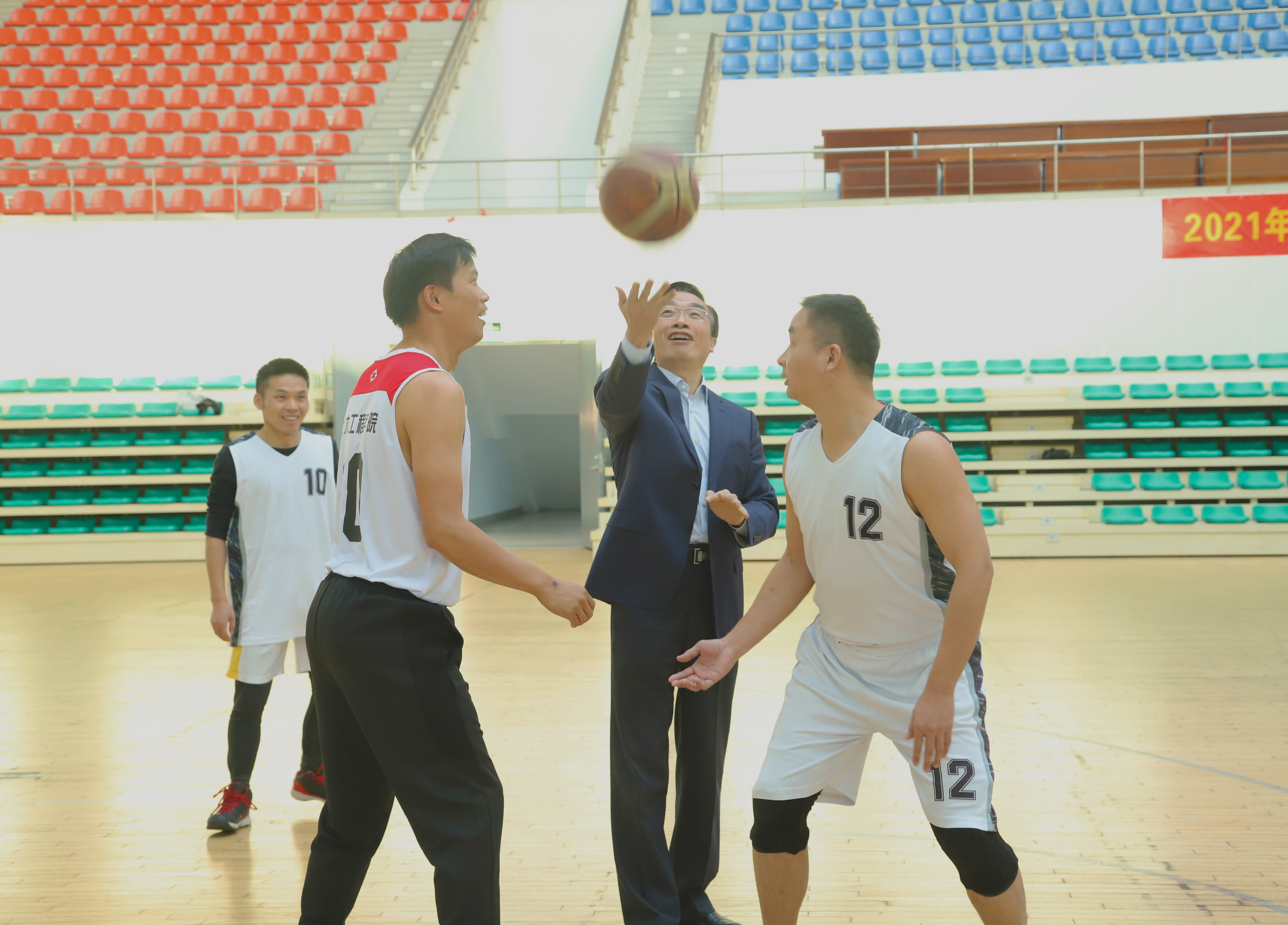 11月10日,校党委书记孙道胜出席开幕式并为比赛开球。孙道胜在致辞中指出,本次篮球比赛是在学校第二次党代会即将召开、博士授权单位获得突破的形势下举行的。广大教职工在做好教学、科研、管理和服务工作的同时,一定要加强锻炼,提高身体素质。作为三大球之一的篮球,有着广泛的群众基础,三人篮球赛也已进入奥运会项目,希望通过比赛可以提高教职工篮球技能,营造篮球运动氛围,丰富校园文化生活,为在本职岗位上干事创业提供身体素质保障。