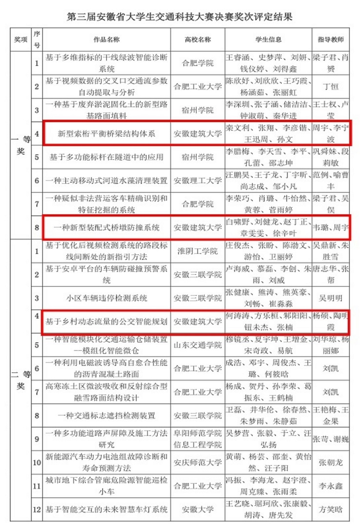 此次比赛充分展现了土木学子扎实的专业功底和技术水平,也为我校在道桥交通领域人才培养方面的经验交流、成果互鉴搭建了平台,为推动我校交通工程、道路桥梁与渡河工程、土木工程等相关专业的教学改革创设了机会,同时也为青年学子展现专业风采与创新思维提供了舞台。(作者:周宇 韦璐 白啸野;审稿:王媛)
