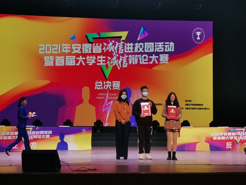 本网讯 为继承和发扬中华传统诚信文化,突出时代特征和育人特色,引导大学生强化诚信意识,安徽省发改委、安徽省教育厅联合主办,安徽广播电视台承办了安徽省第一届大学生诚信辩论赛。公共管理学院辩论协会代表队参赛并荣获合肥市赛区二等奖,同时在省级决赛中荣获道德风尚奖。