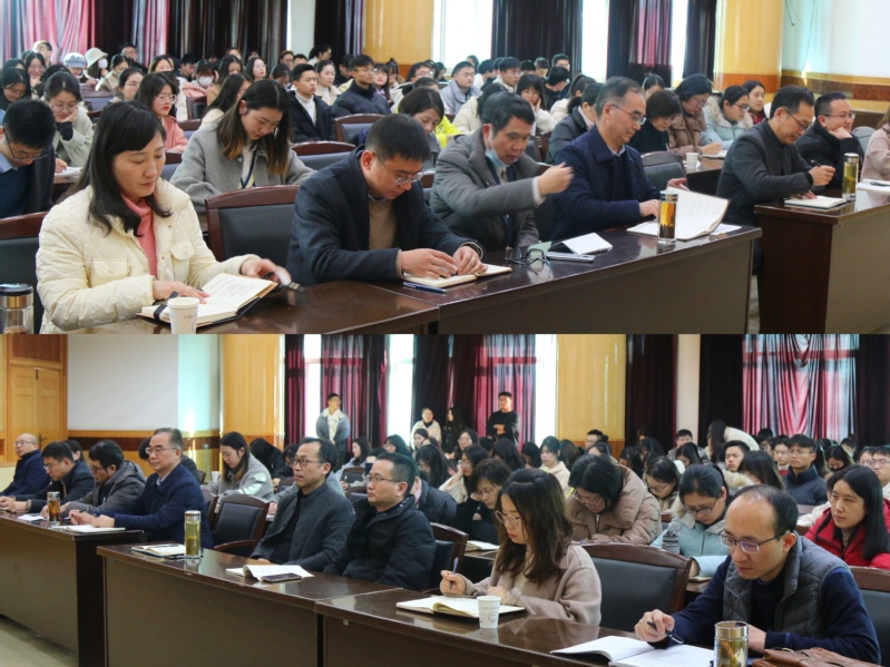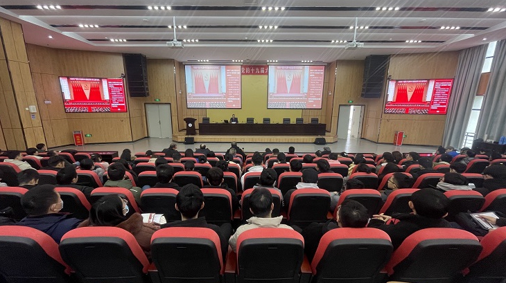 12月28日,副校长闵杰在实验综合楼二楼报告厅为电信学院、学校相关职能部门等两百余名师生党员作党的十九届六中全会精神宣讲报告。