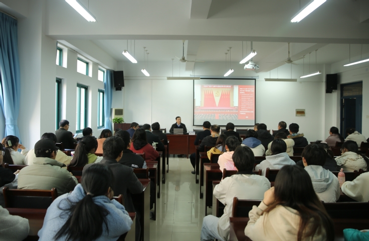 本网讯 12月22日,党委副书记、校长黄显怀深入环能学院宣讲党的十九届六中全会精神,环能学院、外国语学院师生党员、学生代表共百余人现场聆听宣讲报告。宣讲报告由环能学院党委书记主持。