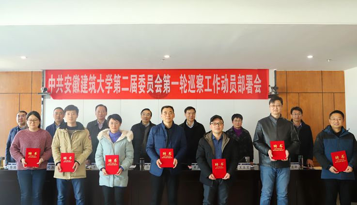 本网讯 12月28日,学校召开中共安徽建筑大学第二届委员会第一轮巡察工作动员部署会,贯彻落实中央﹑省委巡视巡察工作有关会议和文件精神,安排部署学校第一轮巡察工作。校领导孙道胜、黄显怀、蔡新立、王玉兰、闵杰、张亚新、蔡国军出席会议,校党委委员,纪委委员,巡察工作领导小组成员,各基层党委(党总支)、职能部门主要负责人,巡察办、巡察组全体成员参加会议。会议由纪委书记、监察专员、巡察工作领导小组副组长王玉兰主持。