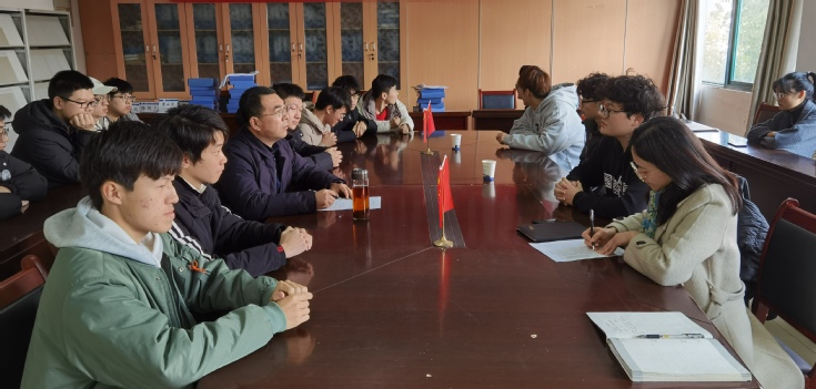 在土木楼三楼会议室,蔡国军亲切的与20勘查一班的同学们进行了座谈,师生之间交换了各自对学校建设等方面的问题与建议,同学们各抒己见,蔡国军一一记录,并就相关问题进行了回答,引导学生遵纪守法,正确处理各种思想和成长问题。