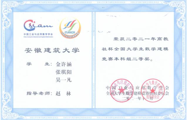 本网讯 2021年“高教社杯”全国大学生数学建模竞赛获奖结果公布,我校学子荣获本科组全国一等奖1项(安徽省共6项)、二等奖2项,安徽省一等奖3项,创我校参加该赛事以来最好成绩。同时,我校还获得安徽省赛区优秀组织工作奖。