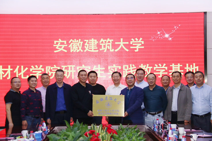 安徽建筑大学研究生院、发展规划处、材料与化学工程学院领导和安徽苏亚建设集团有限公司高管参加了研究生兼职导师受聘暨材料与化学工程学院研究生实践教学基地签约仪式。(作者:王爱国;审稿:丁益)