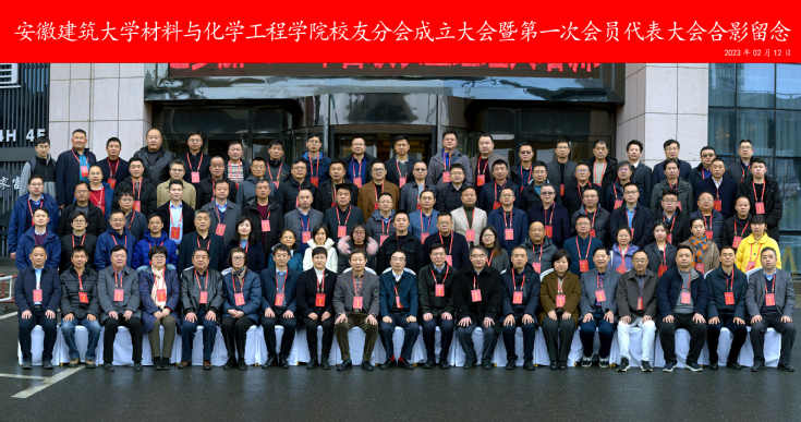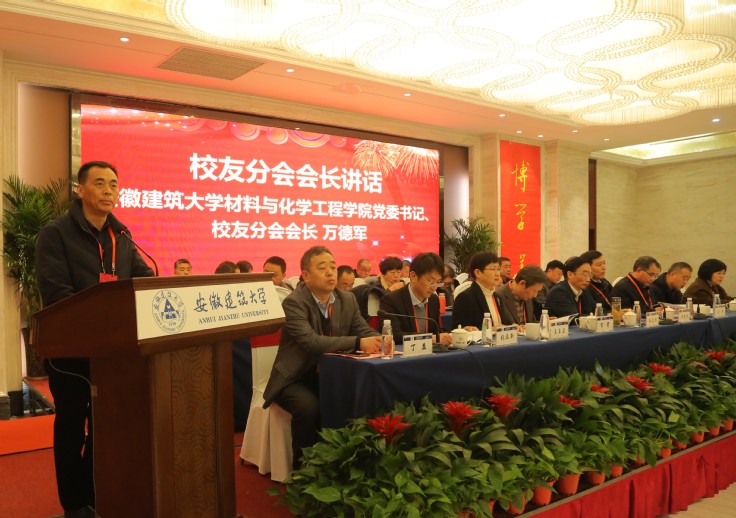 本网讯 为喜迎安徽建筑大学六十五周年校庆,进一步增进校友联系,在学校领导、校友总会和学院历任领导的关心和支持下,安徽建筑大学材料与化学工程学院校友分会成立大会暨第一次会员代表大会于2月12日在合肥隆重召开,来自北京、上海、重庆、西藏等地的68名校友齐聚一堂,共话建大缘、畅叙校园情。安徽建筑大学党委书记孙道胜,校党委副书记、校长黄显怀,校党委常委、纪委书记、监察专员王玉兰,校党委常委、副校长闵杰,校党委常委、副校长张亚新,校党委常委、副校长李早,安徽城市管理职业学院院长刘瑾,学校教育发展基金会理事长宋箭,校友工作处领导以及学院历任领导应邀出席会议。会议由材料与化学工程学院党委副书记、院长丁益主持。