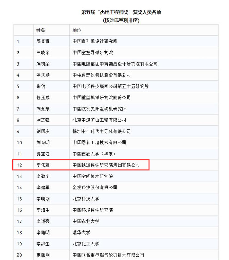 本网讯 近日,第五届“杰出工程师奖”获奖名单在北京揭晓。经86位评审专家(包括43位院士)评选,“杰出工程师奖”奖励委员会审定,从全国千余名优秀工程师申报者中评选出40名“杰出工程师奖”和30位“杰出工程师青年奖”获得者, 我校1995级无机非金属材料工程专业校友李化建荣获“杰出工程师奖”。
